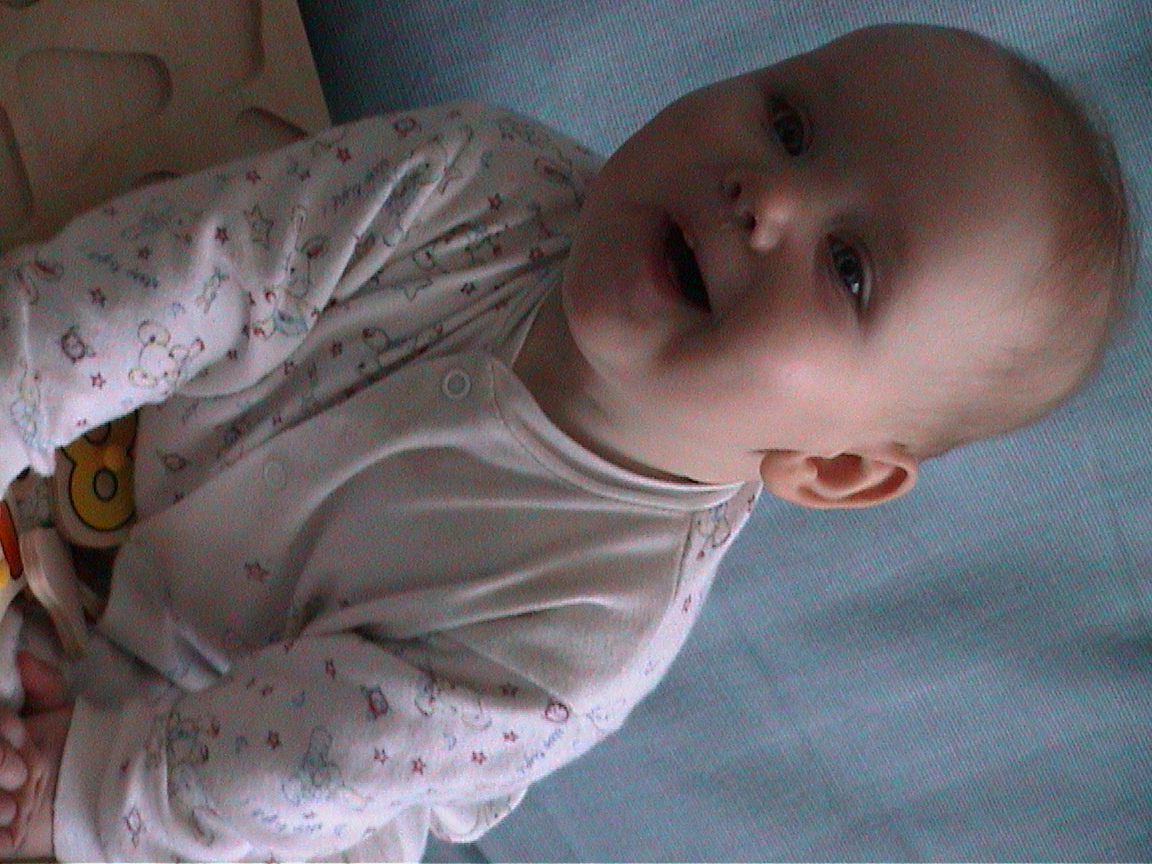 • First time for Penelope balancing on my hand, no photo but here is an example with Clemency at 5 months http://snurl.com/enhck #